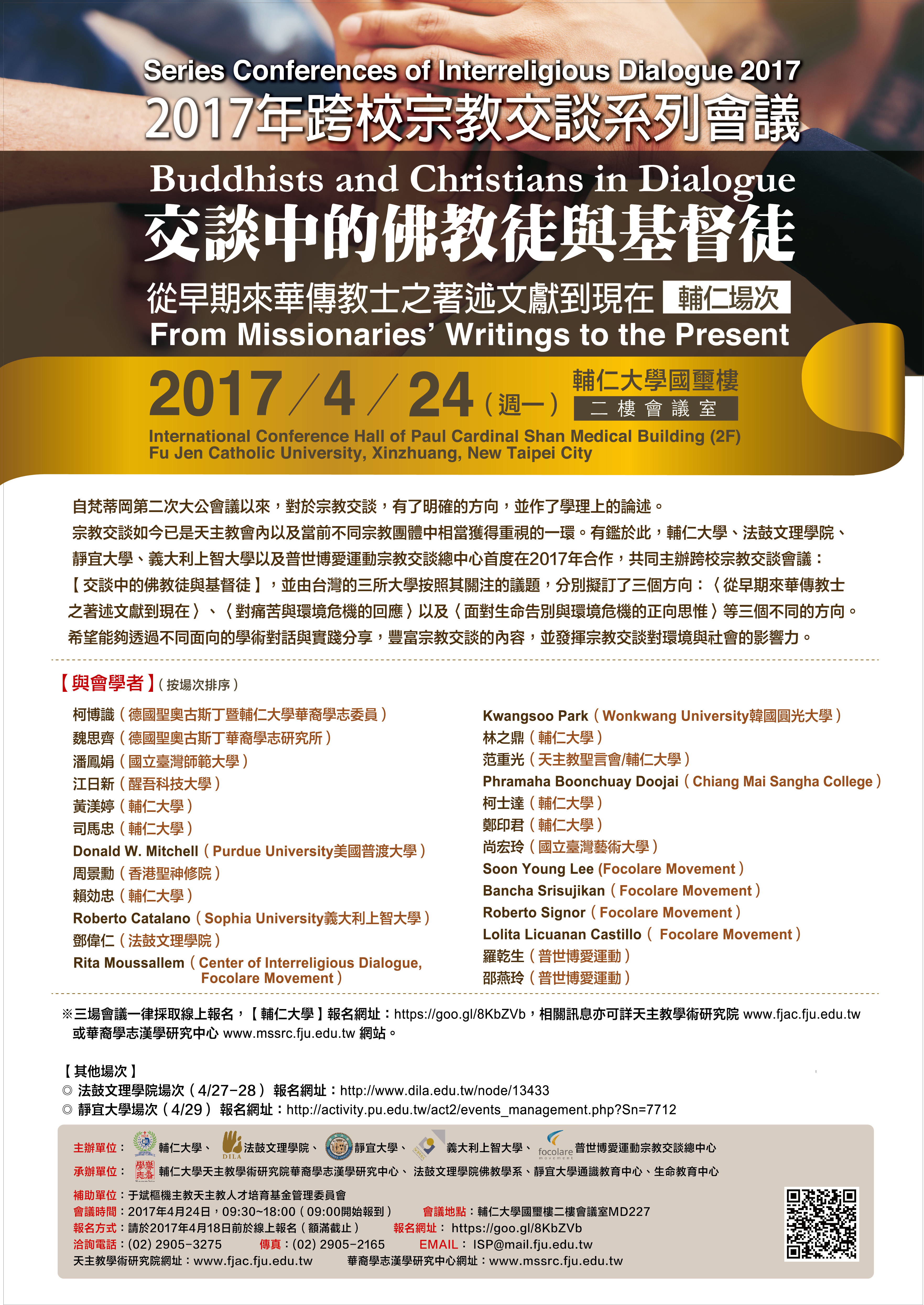 主辦單位:輔仁大學、法鼓文理學院、靜宜大學、義大利上智大學、普世博愛運動宗教交談總中心